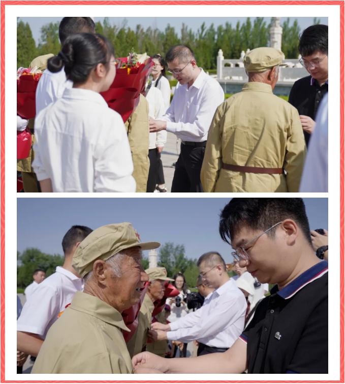 最激动人心的时刻当属纪念章颁发环节。惠民县退役军人事务局党组书记孟强、椒江区退役军人事务局局长徐振兴、滨州市浙江商会会长李玮,庄重地为参战老兵佩戴纪念章。七十年时光流转,虽染白了他们的鬓发,却从未黯淡老兵们眼中坚毅的光芒。现场响起经久不息的掌声,这是对民族脊梁最真挚的礼赞。