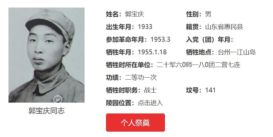 惠民县档案馆向台州解放一江山岛烈士陵园提供烈士遗像